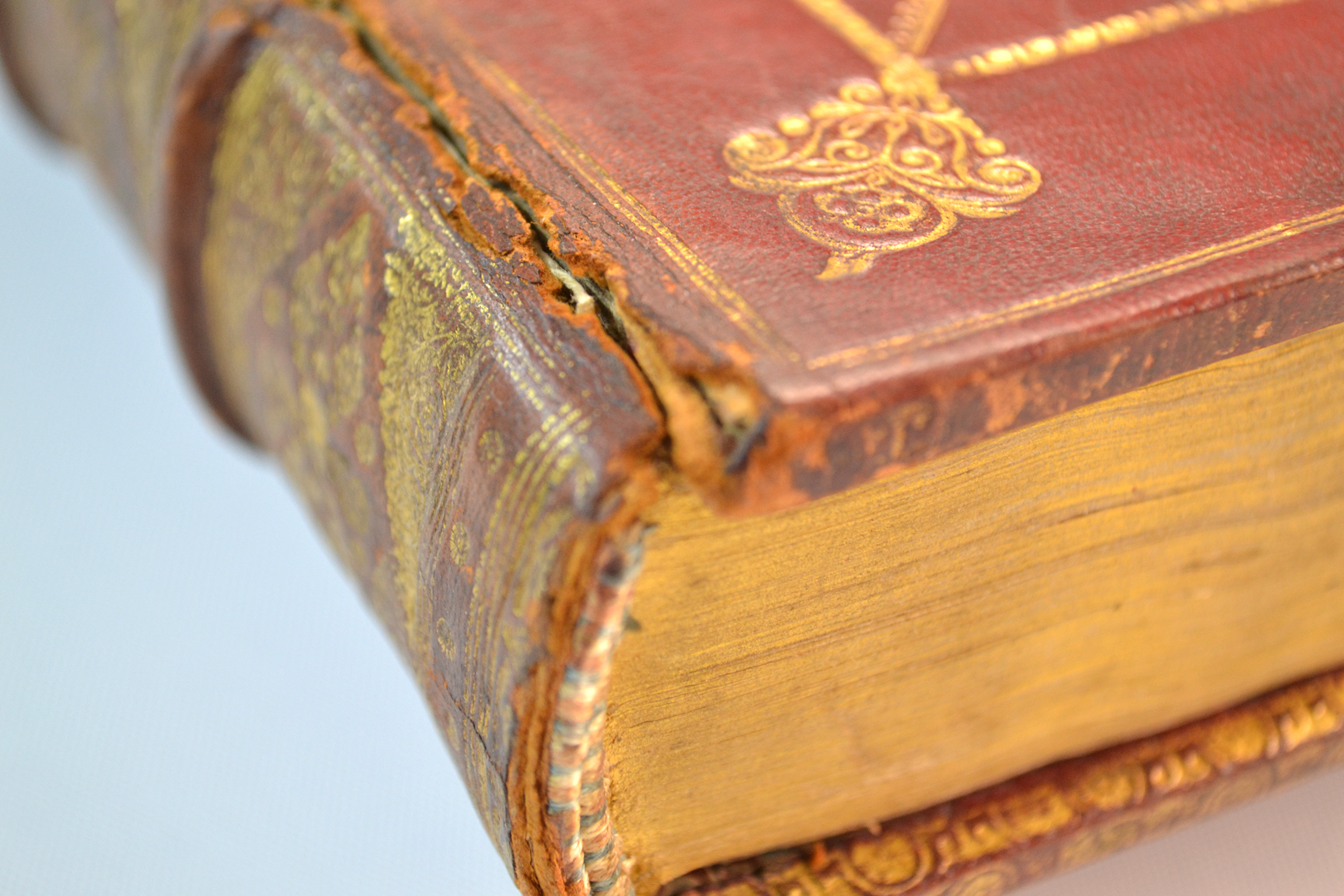 Our wide knowledge and experience of past practices and traditional skills enable us to specialise in the restoration of period bindings, in particular leather rebacking and facsimile cover designs. The end result is a sympathetic blend of old and new in a unified whole, returning a binding to its intended appearance and a robust, functioning state.
